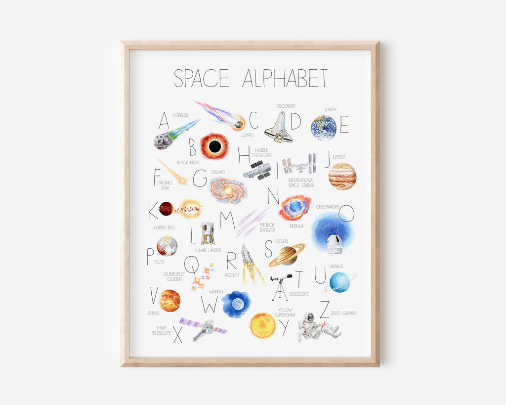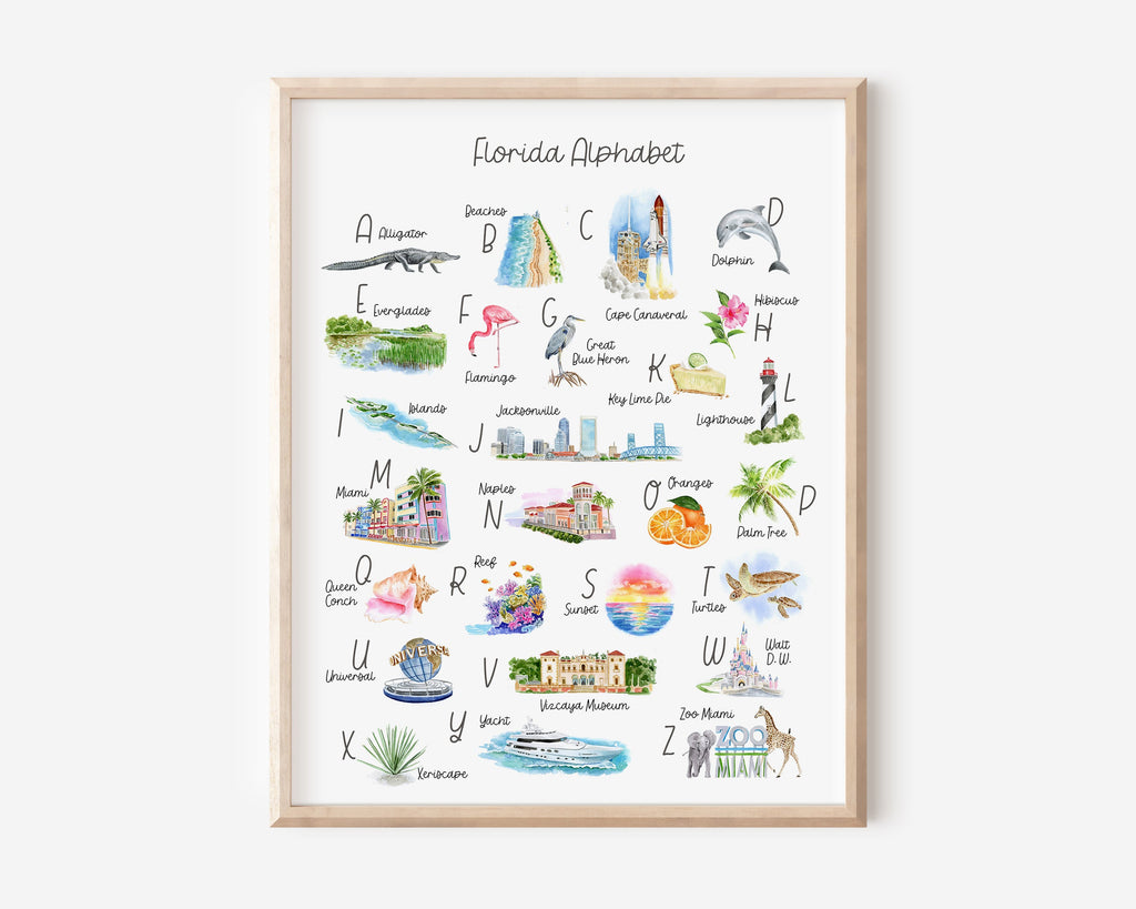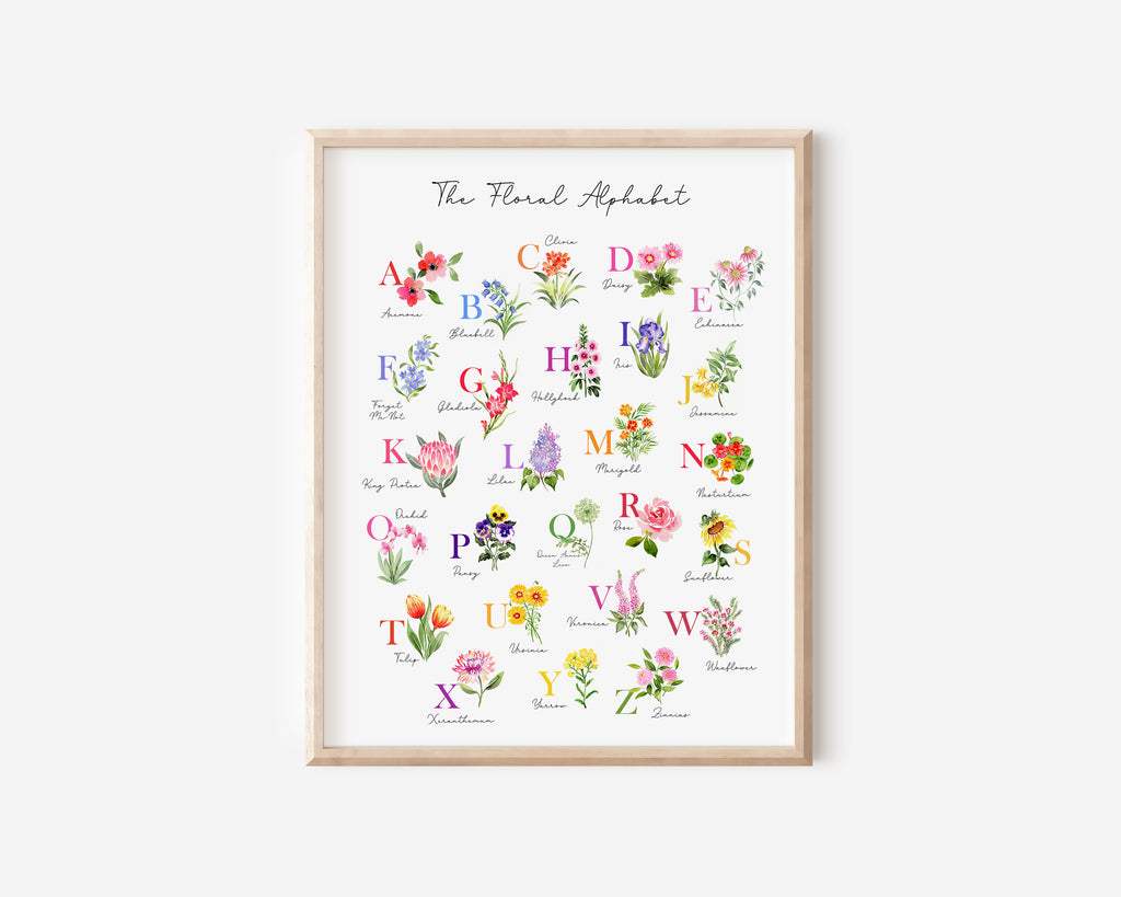 Making learning ABCs a treat with our themed Alphabet Prints. Each print features 26 handpainted watercolor illustrations inspired by the wonders of nature. Both beautiful and educational, these pieces merge style and substance - pleasing little one and parents alike.
